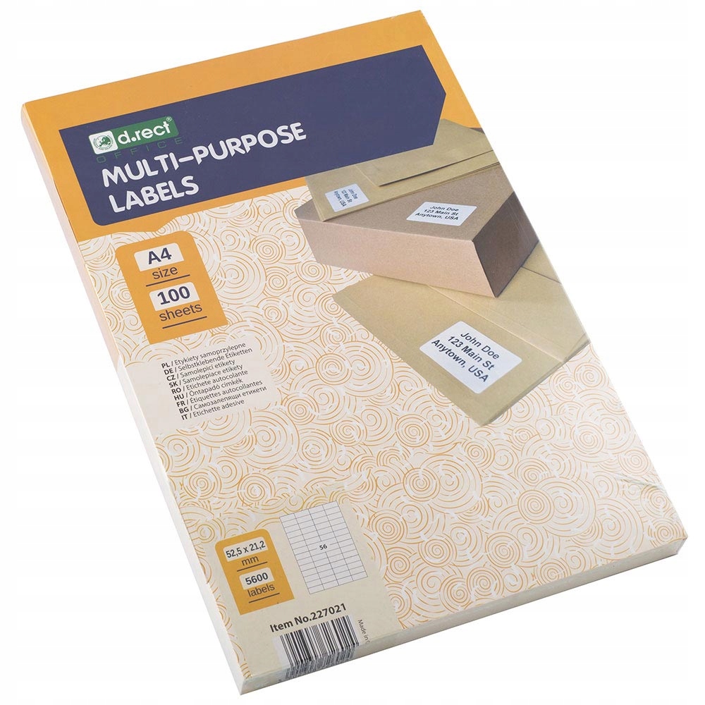 ETYKIETY SAMOPRZYLEPNE A4 56SZT 52,5X21,2MM 100ark