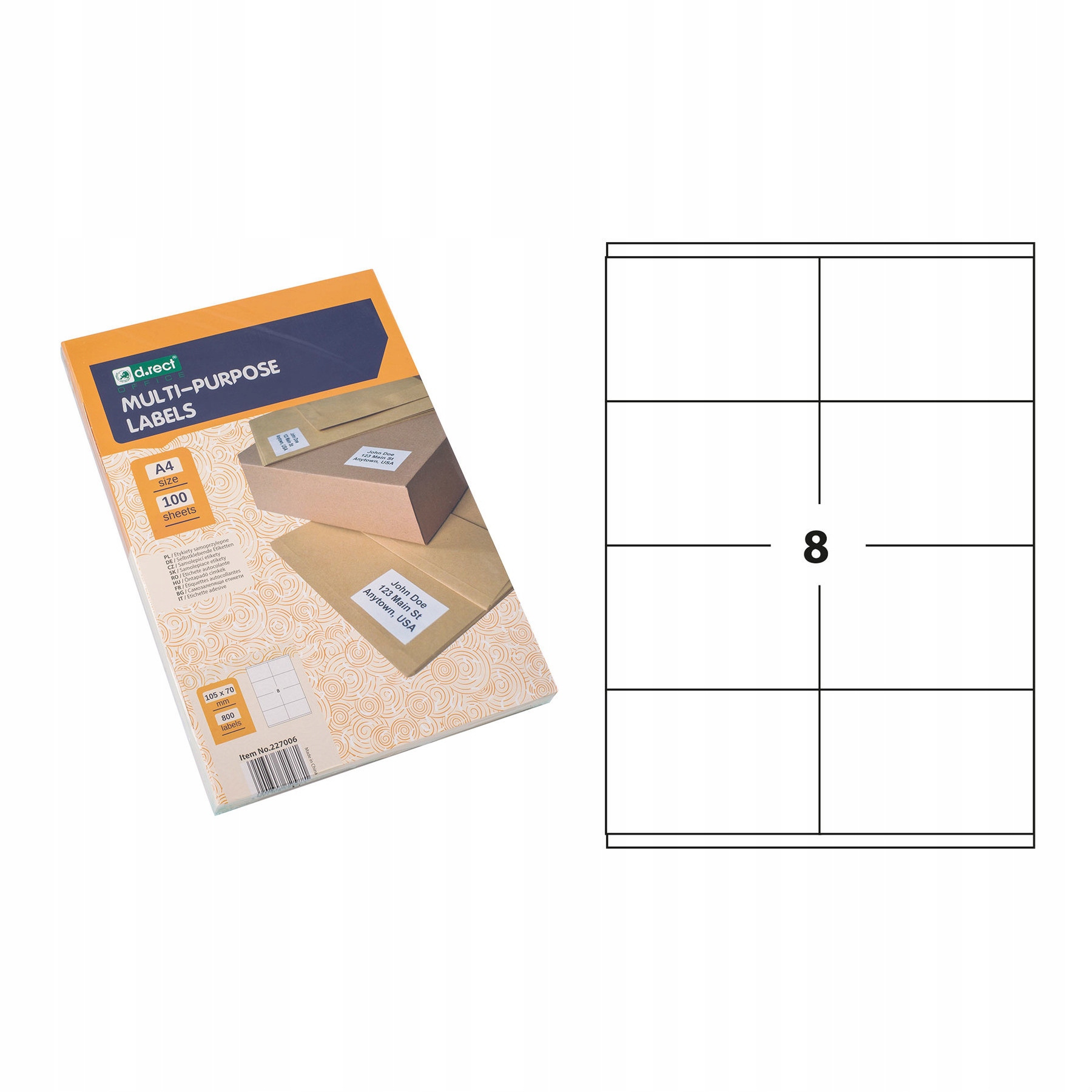 ETYKIETA SAMOPRZYLEPNA A4 D.RECT 105x70mm A100