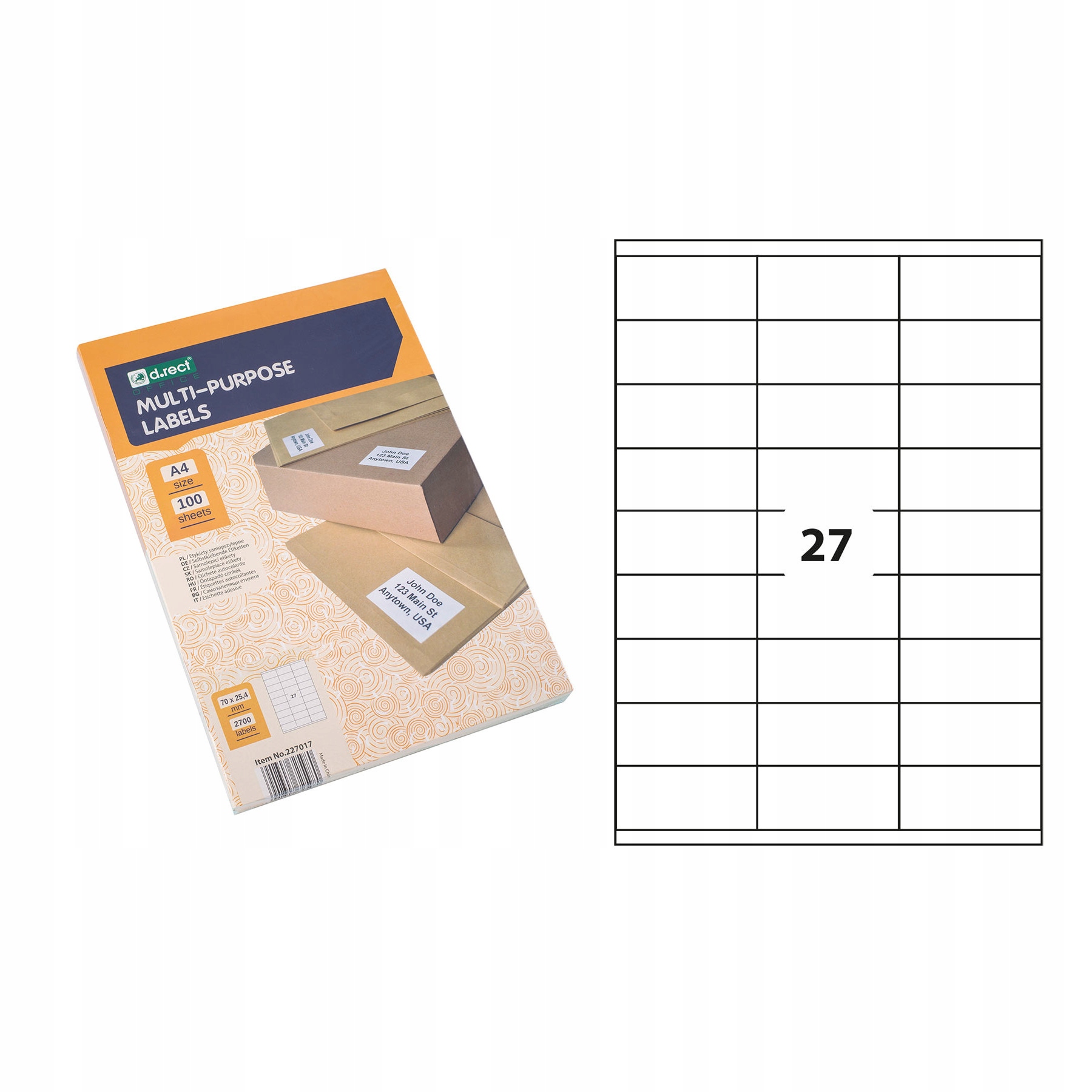 ETYKIETA SAMOPRZYLEPNA A4 D.RECT 70x25,4mm A100